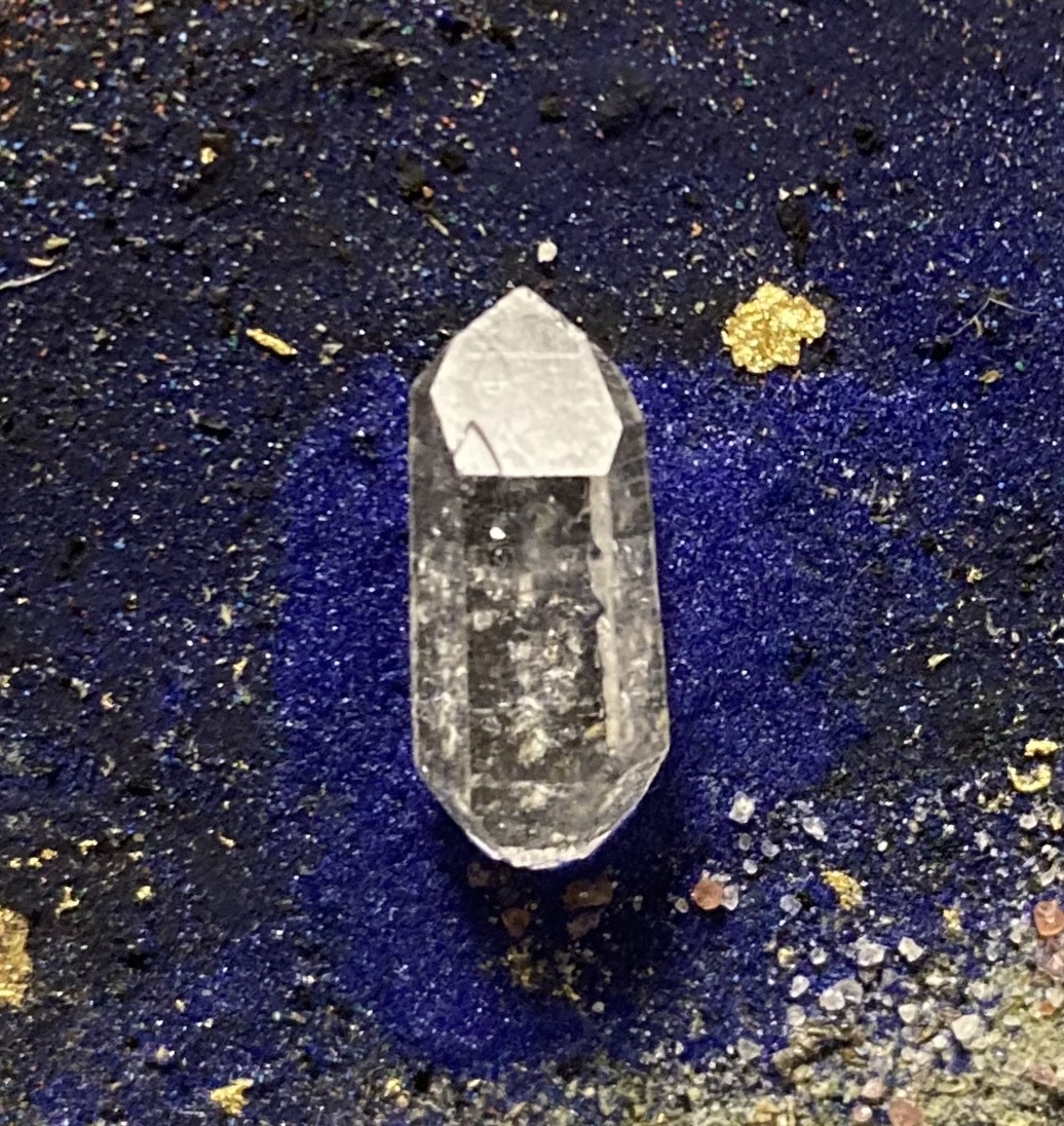 水晶の拡大写真、てっぺんの面に△の陰影があるのがわかりますか?