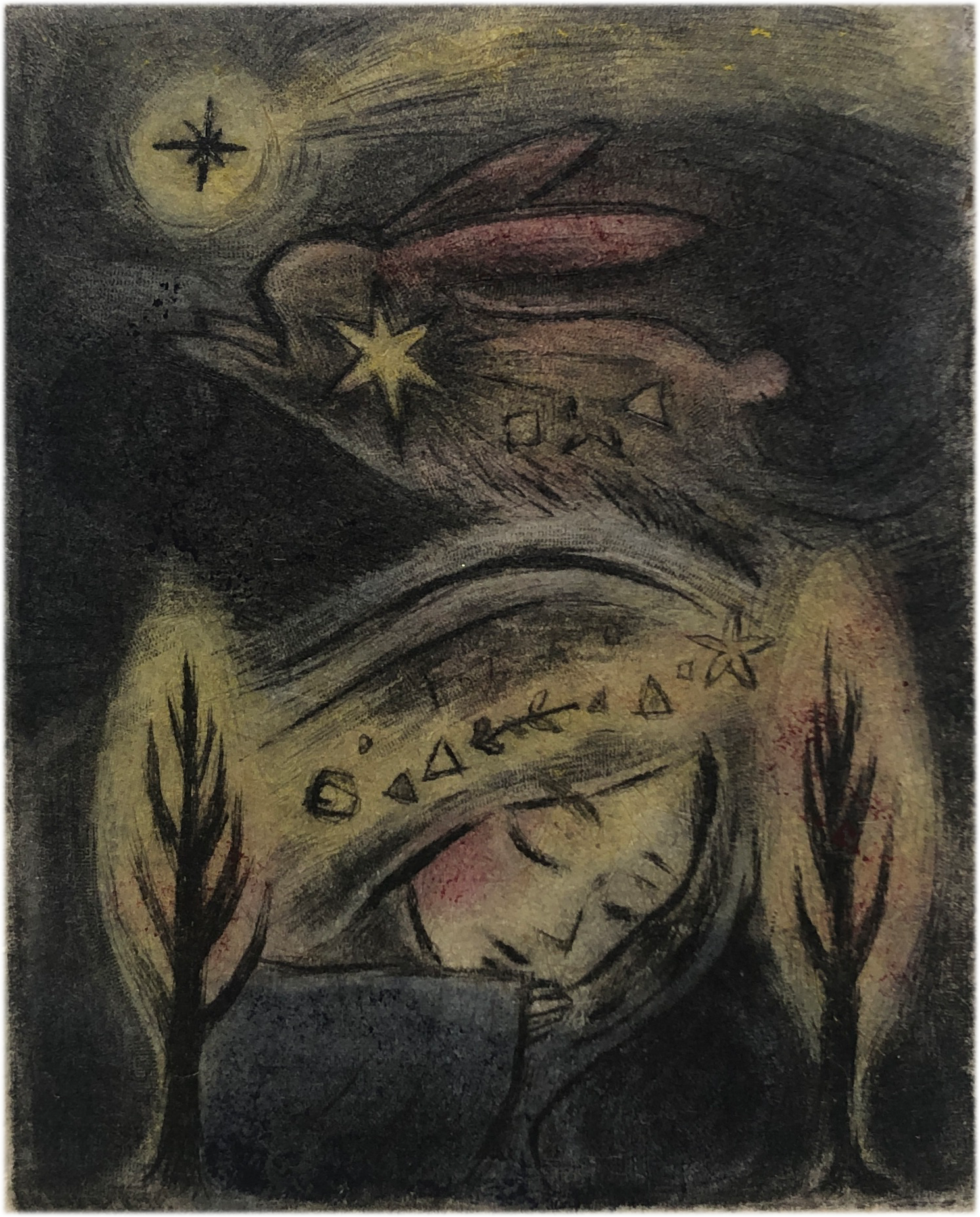 そんなイメージも手伝ってか、精麻でできた紙に版画を刷ると、なにか「おふだ」とか「お守り」とか、そんなイメージも湧いてきます。