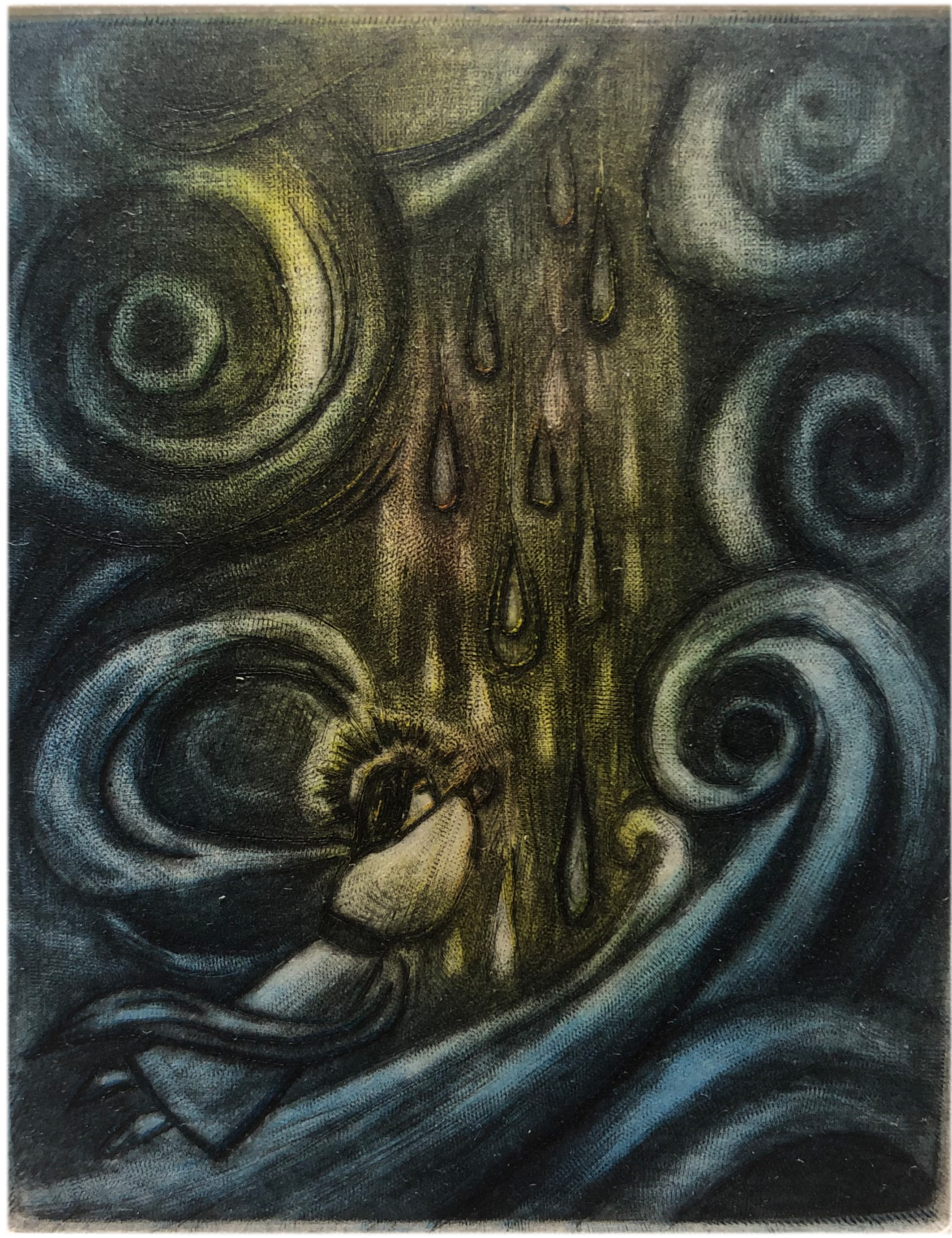 Amrita=甘露、ということで、天からの恵みを受け取る絵にしています。