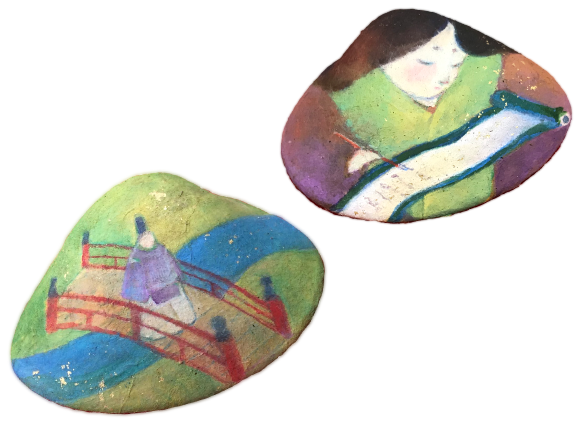 この絵には想いが川になって、愛しい人がそこを渡ってくるイメージを描いています。
