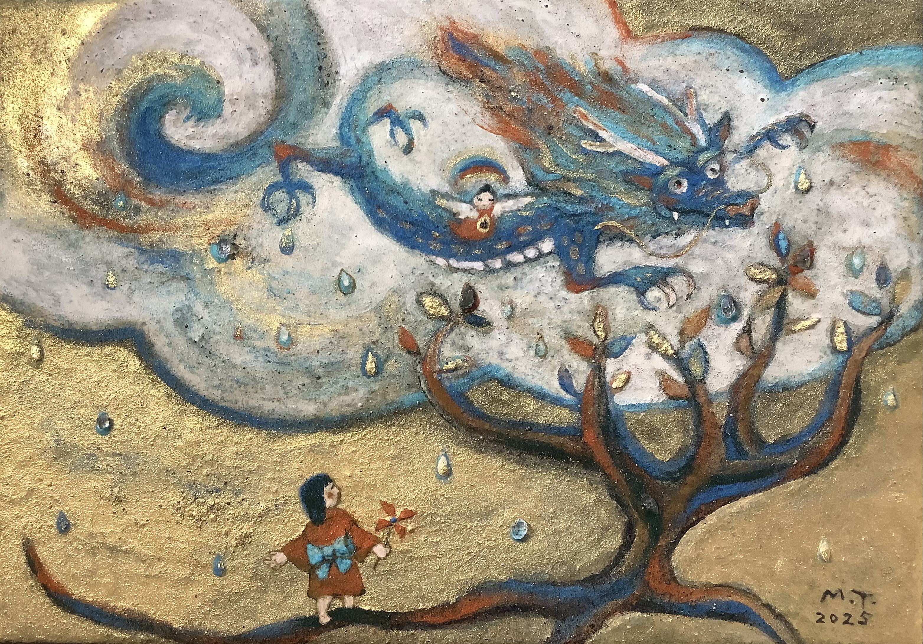 龍と天使は、絵に使った石「タツナイト」ゆかりの大己貴命(オオナムチノミコト)と少彦名命(スクナヒコナノミコト)のお二方がモデル。