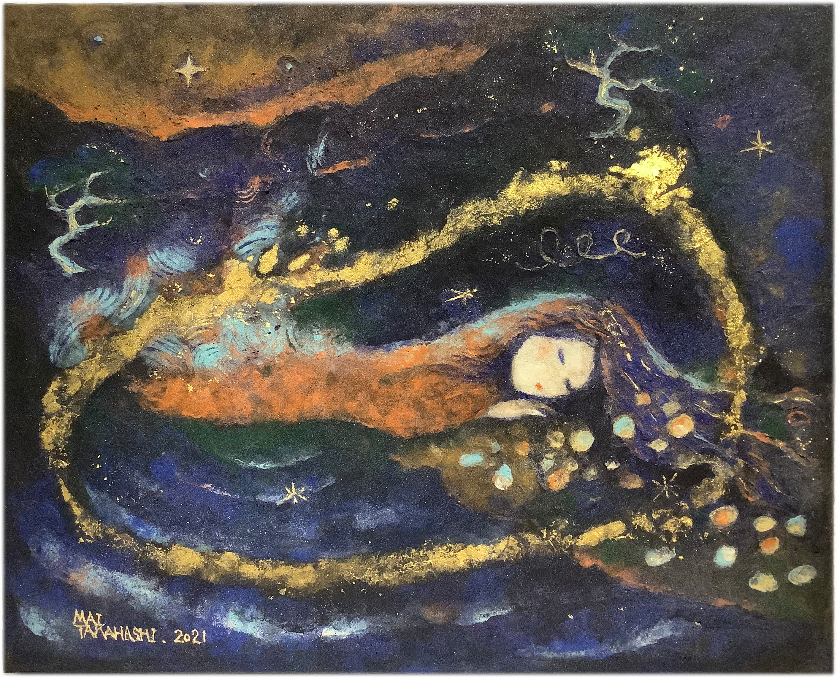 金属製の舟が漂着し、中から異国の女性が出てきたという不思議な話で、 もしかするとUFOに乗ってきた宇宙人だったんじゃないかとか、言われてます。 この絵を描いていた辺りだったか、とても面白く拝見したのが、 精神世界の鉄人 トーマイタルさんによるアヌンナキツアー 4 虚舟というブログ記事。 トーマさんによると、世界中の女神伝説は「ある一つの存在」に繋がっていくのだそうで、 現代の歴史観とか、いろんな専門家の方からするとトンデモ説になっちゃうのかもしれないのですが、 私が女性を描く時って、なぜか頭に布をかぶせたりすることが多く、(この絵もそう見えるかも) もしかして、そういう女神存在を表そうとしているのかも?と考えたりして、 自分が描いているもの、へのヒントをもらった感じがして、なんだか嬉しかったです。 トーマさんはこの記事から間もなく亡くなられてしまいましたが、 柔軟な視点で物事を捉えること、それが間違いではないことを、 記事を通して教えてくれたように感じています。 |